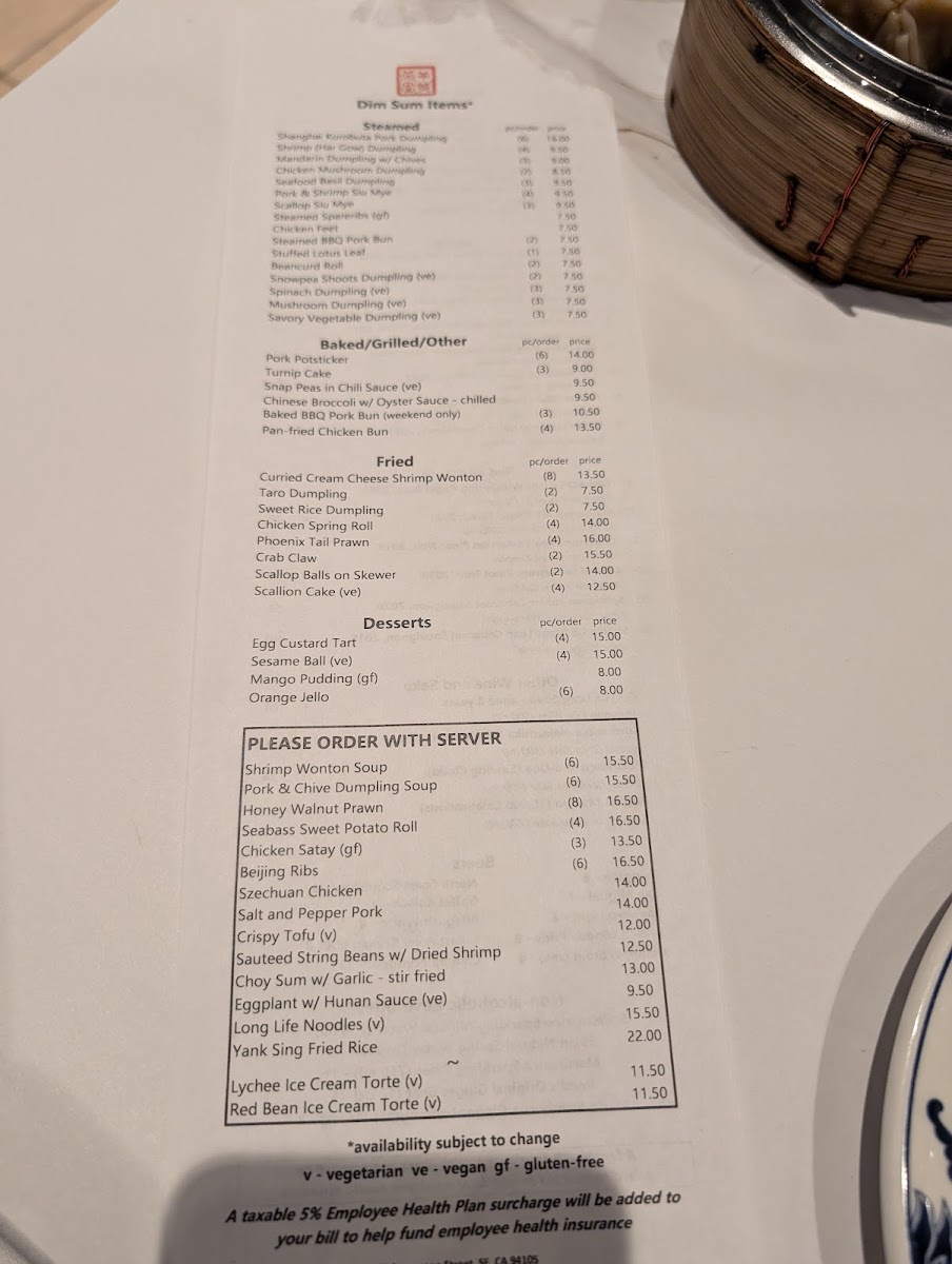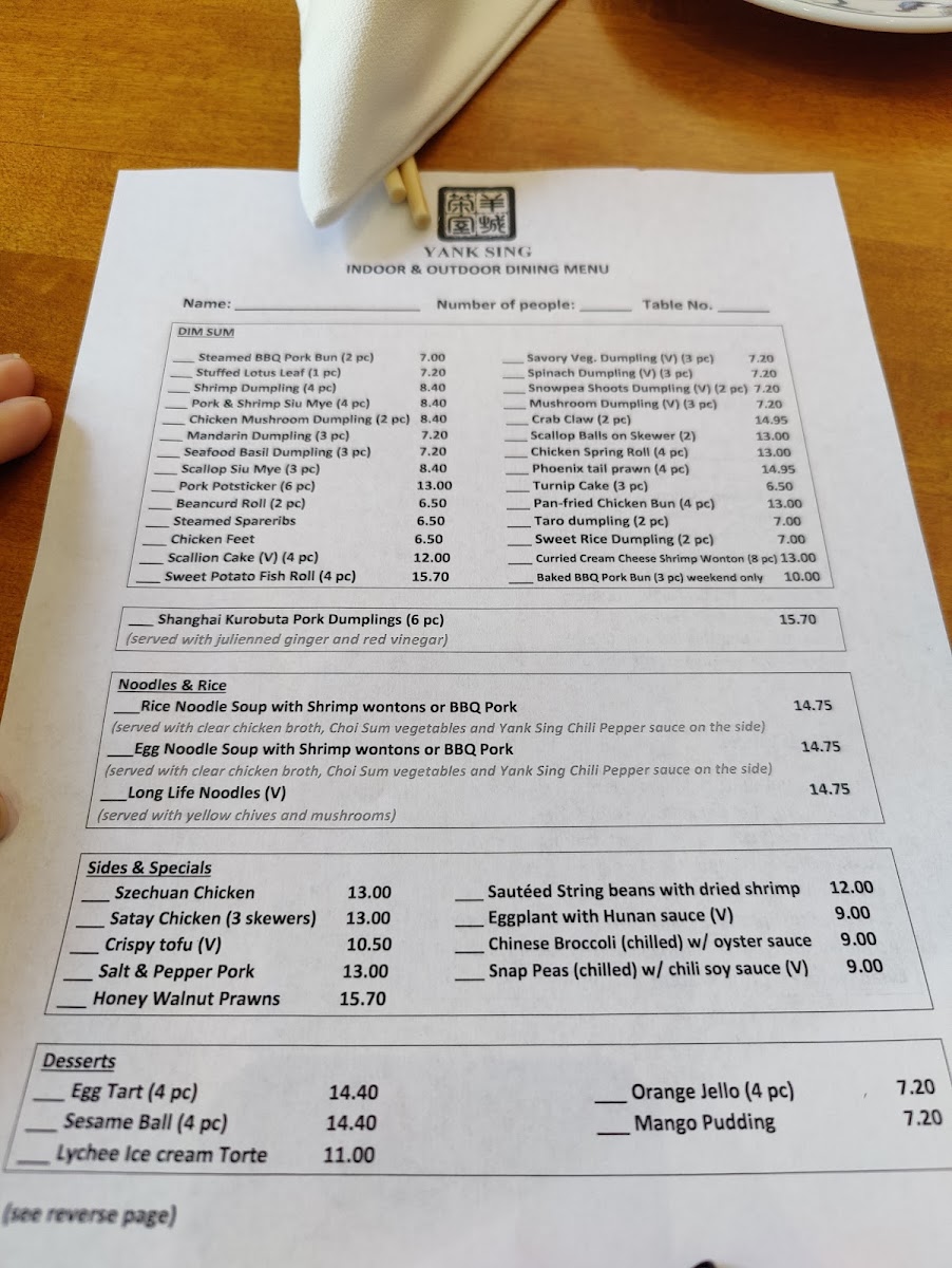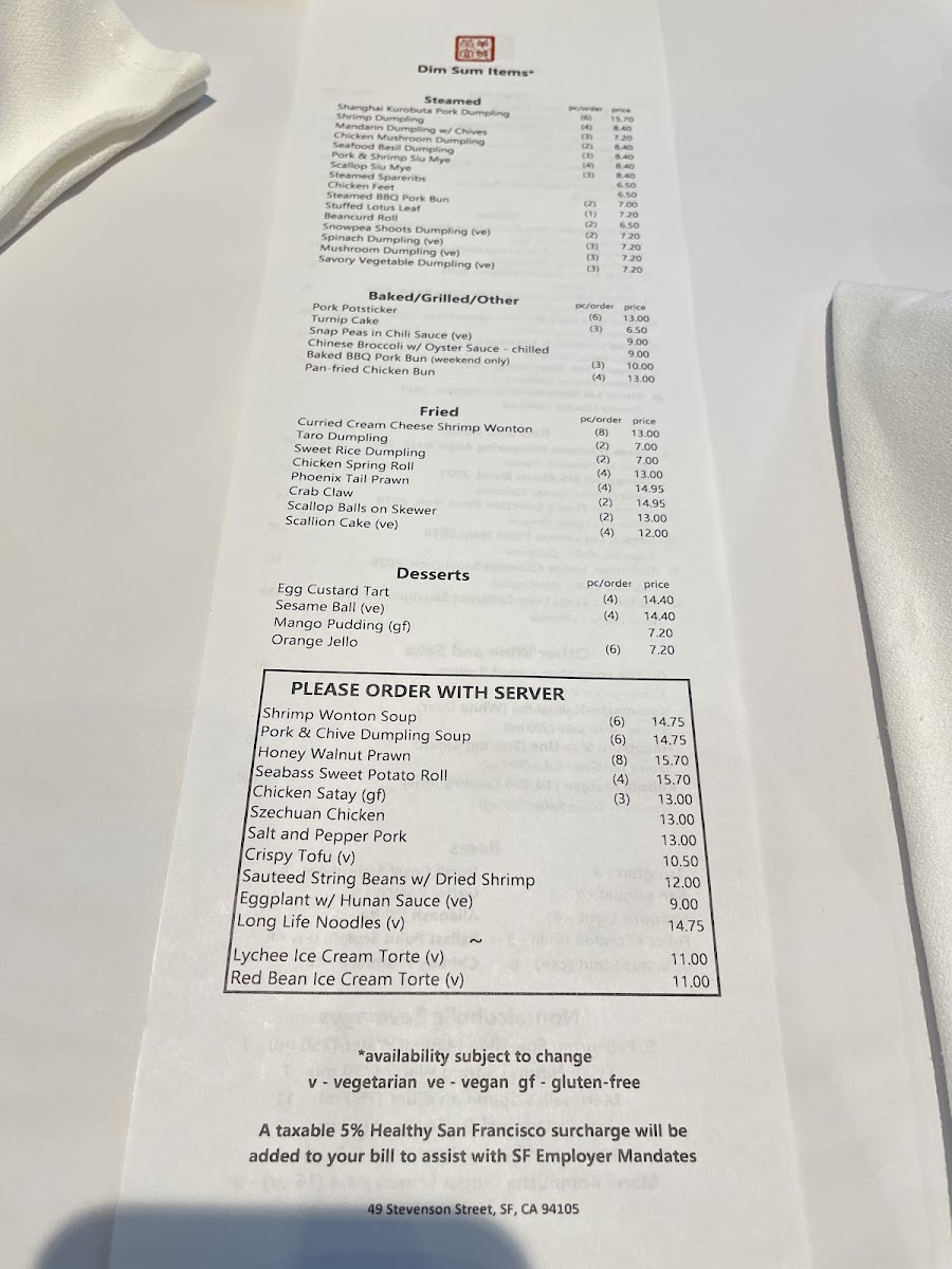 The menu at Yank Sing on Stevenson Street offers a thoughtfully curated selection of Cantonese dim sum and classic Chinese dishes. It balances traditional flavors with a polished dining experience, making it a place for both casual gatherings and special meals. You’ll find a range of lightly steamed dumplings, savory buns, and small plates that invite sharing and slow enjoyment, perfect for brunch or midday meet-ups.
