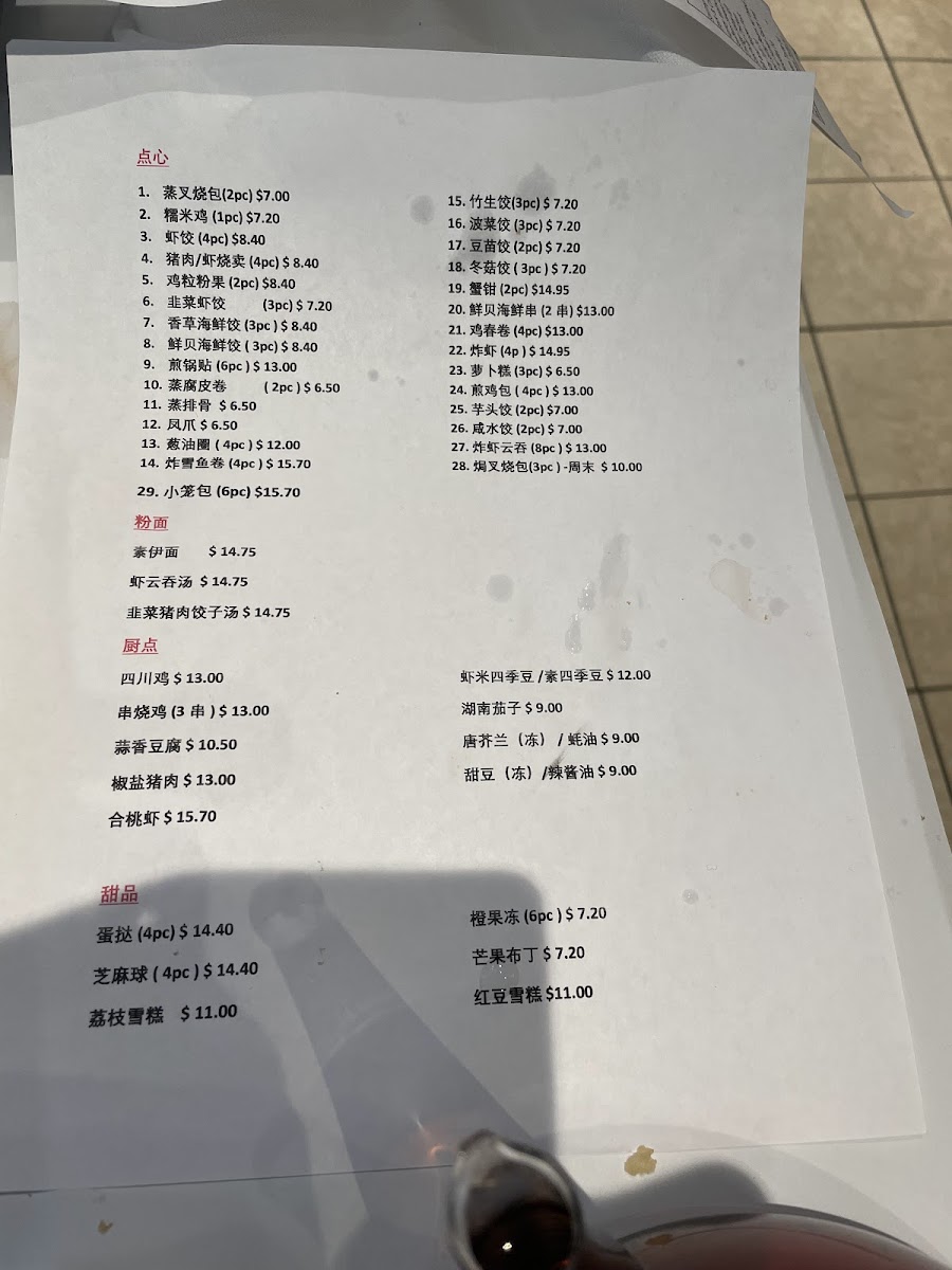 Highlights include delicate shrimp dumplings, tender pork potstickers, and distinctive dishes like Shanghai Kurobuta pork dumplings and chicken feet. The rice noodle soups and fried rice options provide heartier choices that complement the dim sum well. Desserts such as egg custard tarts, mango pudding, and sesame balls offer gentle, familiar sweetness to round out your meal.